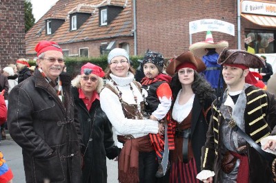 Zwei Piraten halten Ausschau nach Beute - im Kinder-Karnevalszug in Verberg - Helau. (21.02.2009)