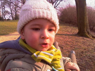 Ja Oma, wenn ich hier im Kinderwagen sitze, kann ich auch viel besser sehen, was du so (ohne mich auf dem Arm zu haben) machst. (30.01.2007)