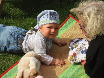 Huch, Oma, nicht so wild, sonst falle ich doch aus meinem Anhänger. (04.06.2007)