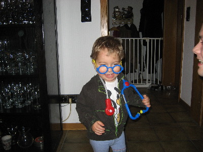 Der Nikolaus hat mir einen Arztkoffer geschenkt und jetzt kann ich dem Papa demnächst assistieren. (6.12.2007)